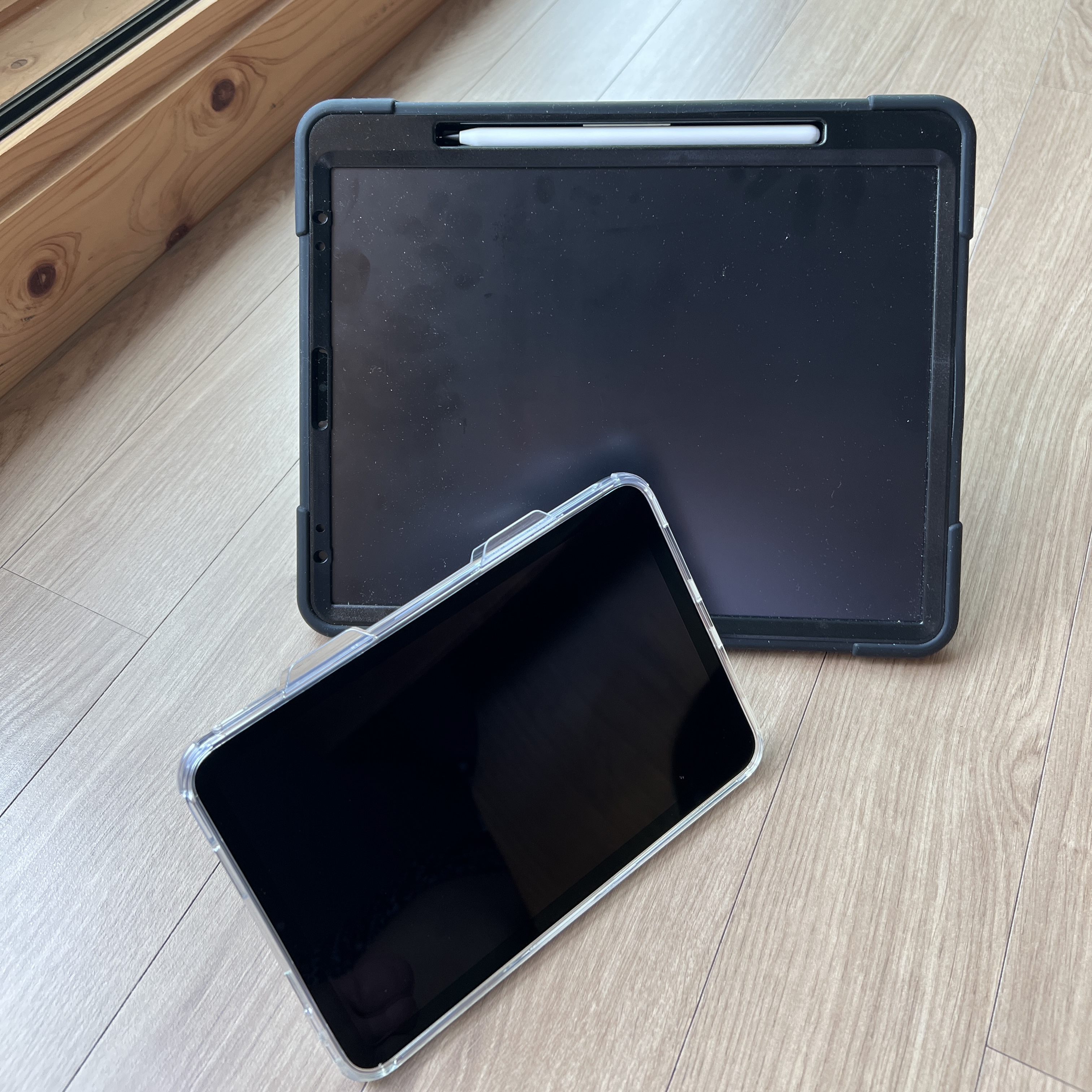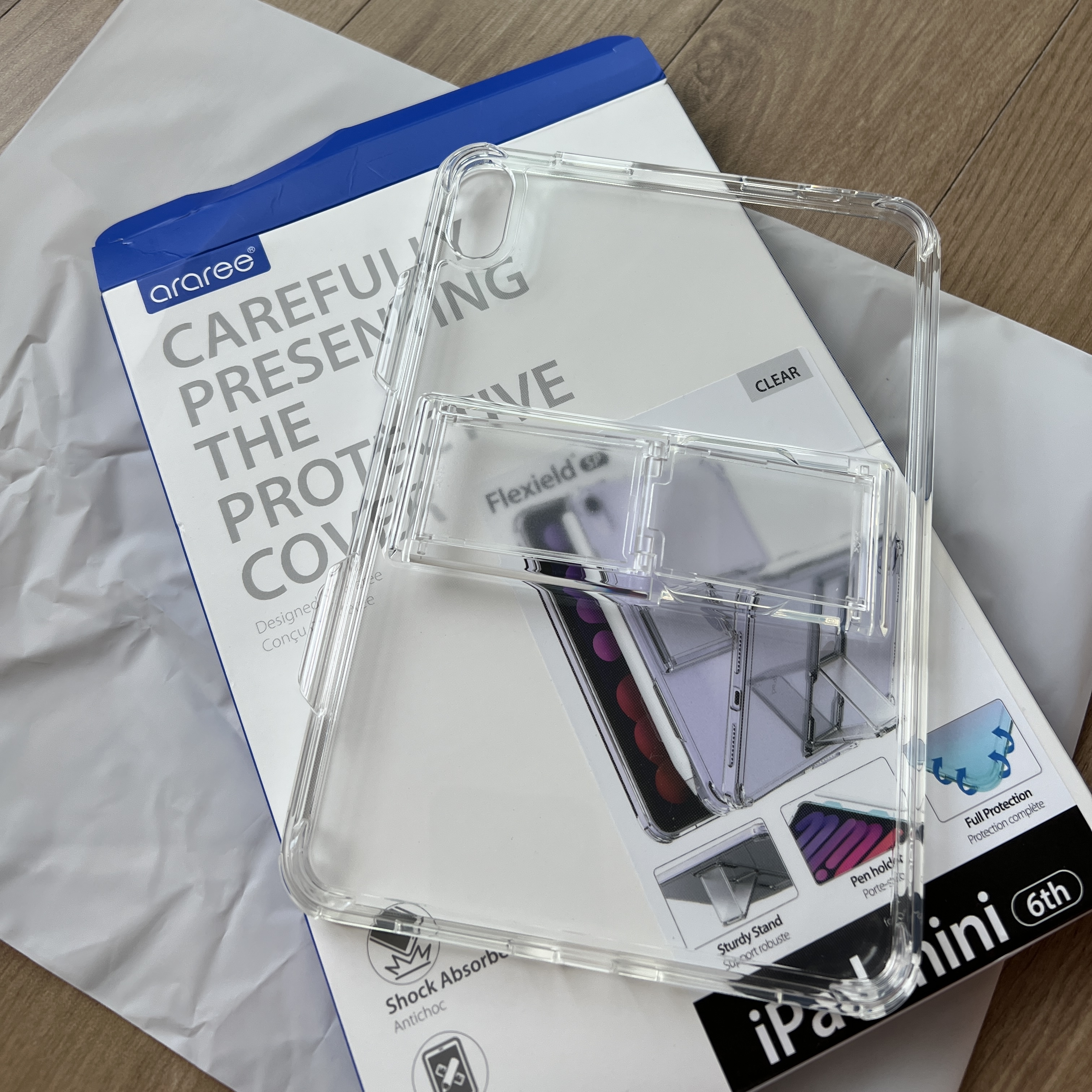 쿠팡에서 아라레 플렛실드 SP 케이스로 찾으면 된다. 이건 스텐드가 달려있는 젤리케이스라고 보면 된다. 애플팬슬도 달아놓을 수 있다.