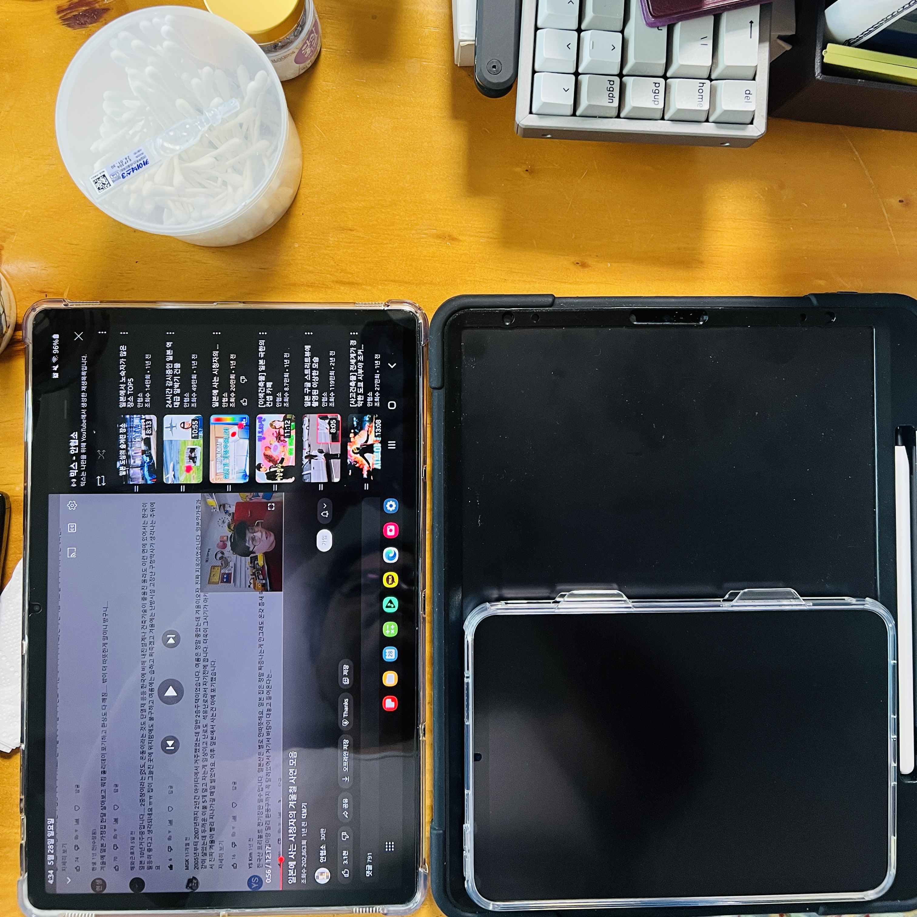 아이패드 프로 12.9인치, 갤럭시탭 S7FE 와 사이즈 비교.