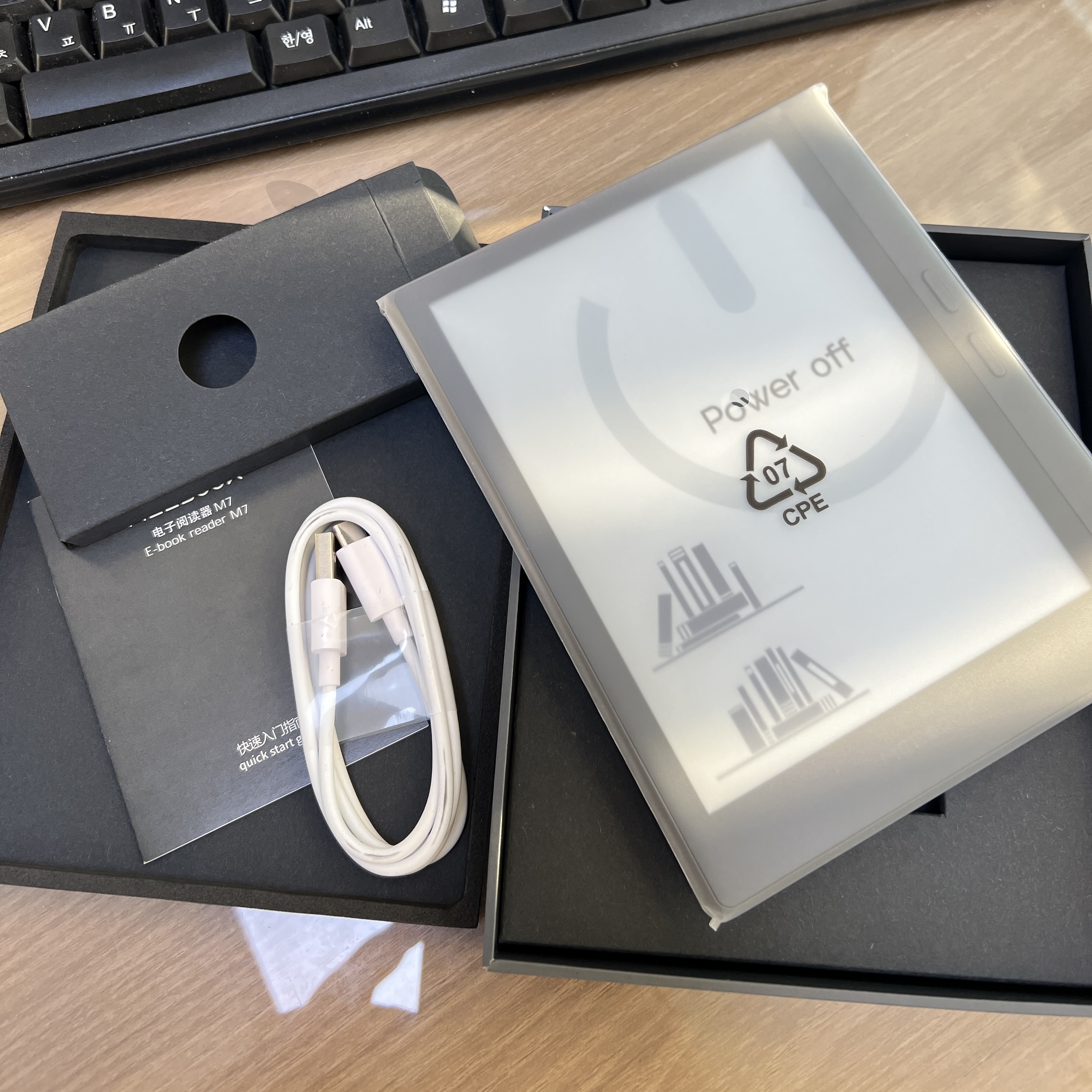 케이블 한개, 메뉴얼 한개, 그리고 본체... 쿡이가 환경생각한다고 충전기 빼고나서는 다 따라가는 거 같다. 이런건 좀 안따라해도 되는데...