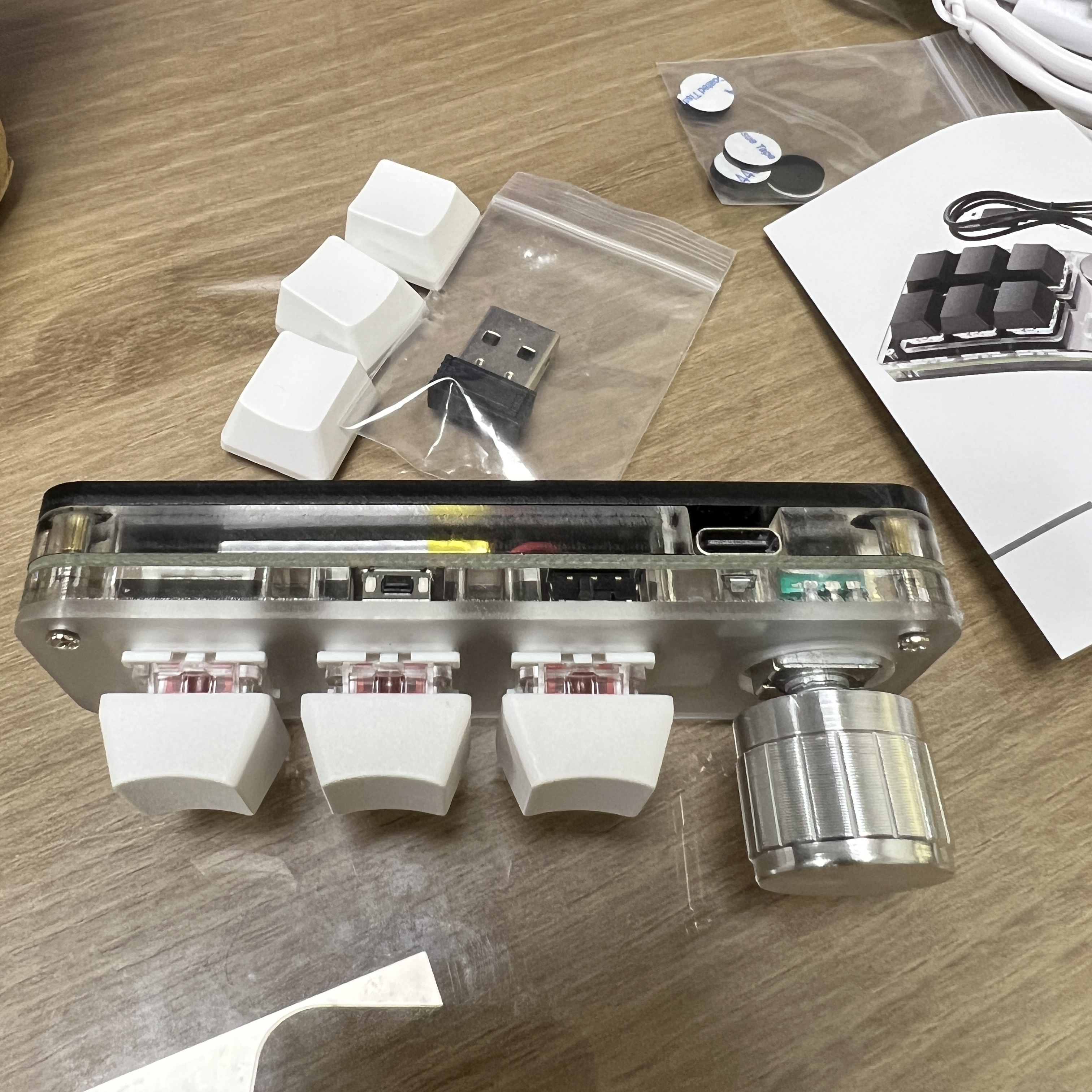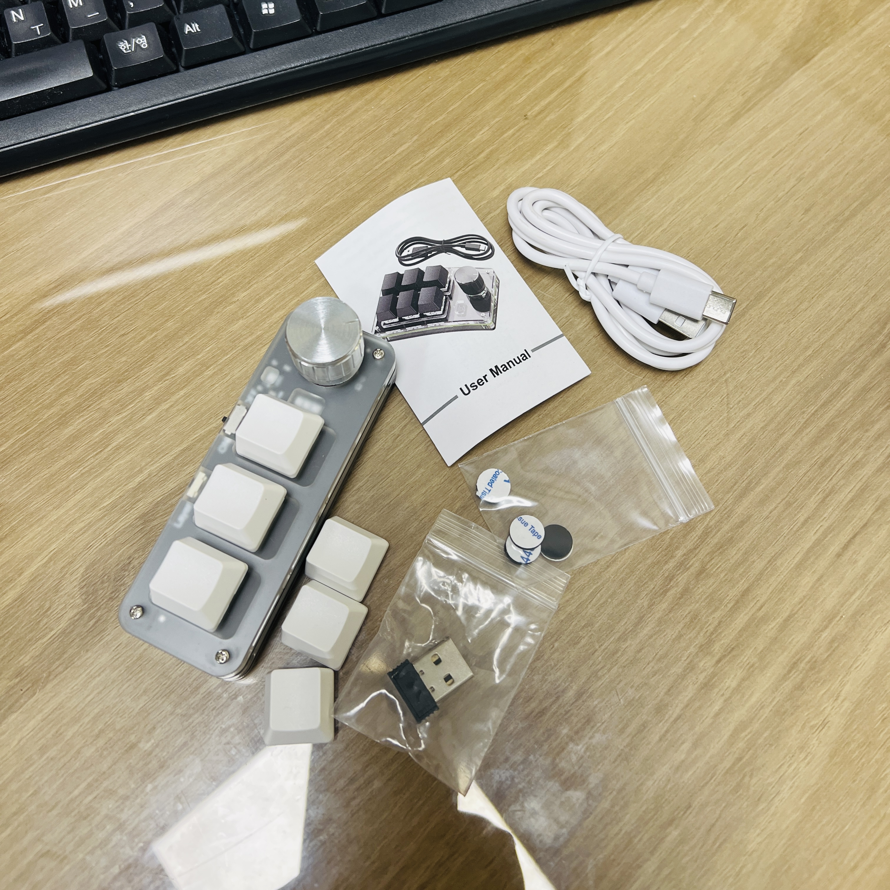 USB-C 케이블 하나, 여분의 키캡 3개, 2.4G Wifi 동글도 있고, 저 키보드 밑에 붙여서 쓰라고 미끄럼 방지용 범폰도 들었다.