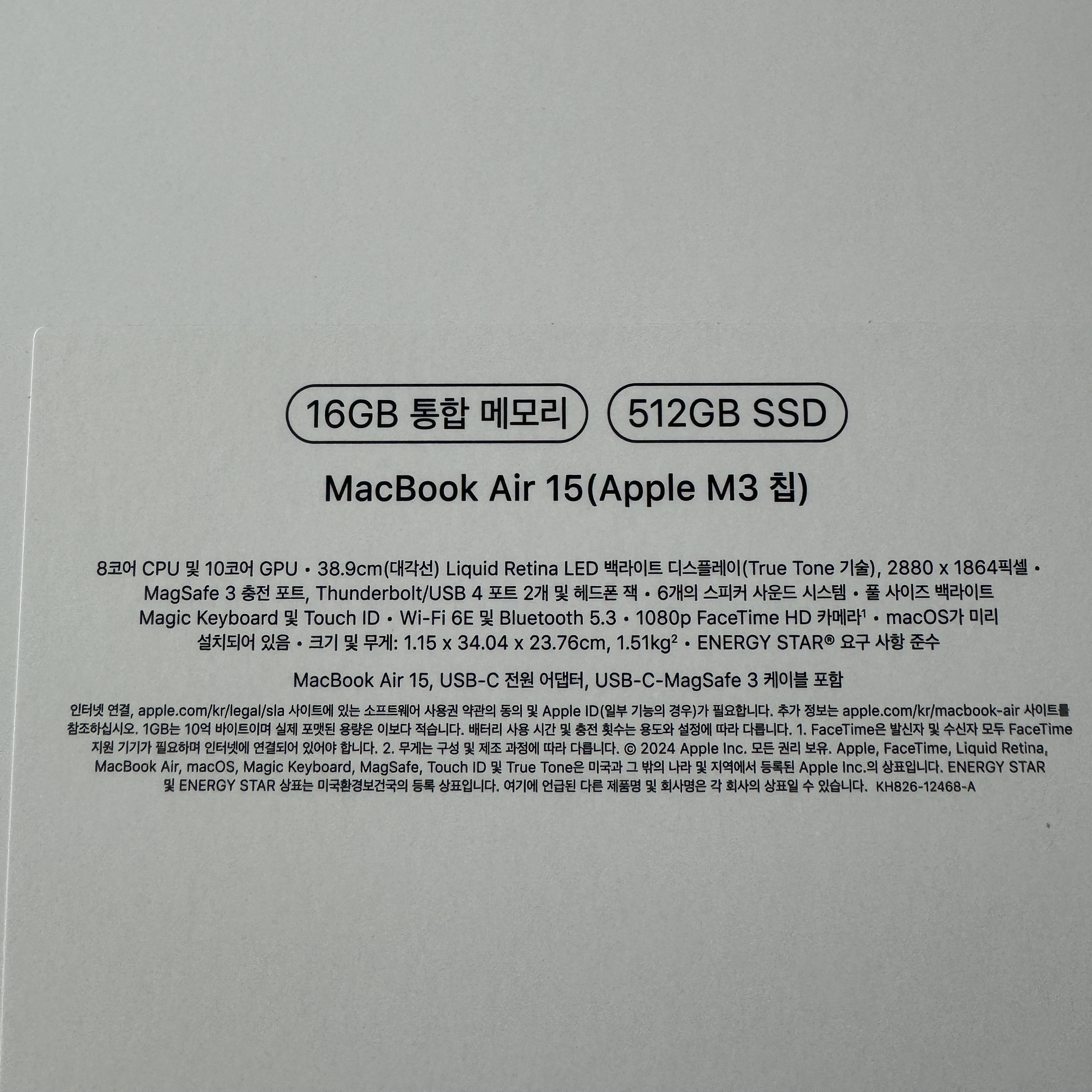 맥북에어 15인치 2024 모델... 케이스부터 차이가 난다. 요넘은 그냥 일렉트로마트에 가서 집어왔다. 기다리기 싫더라구...