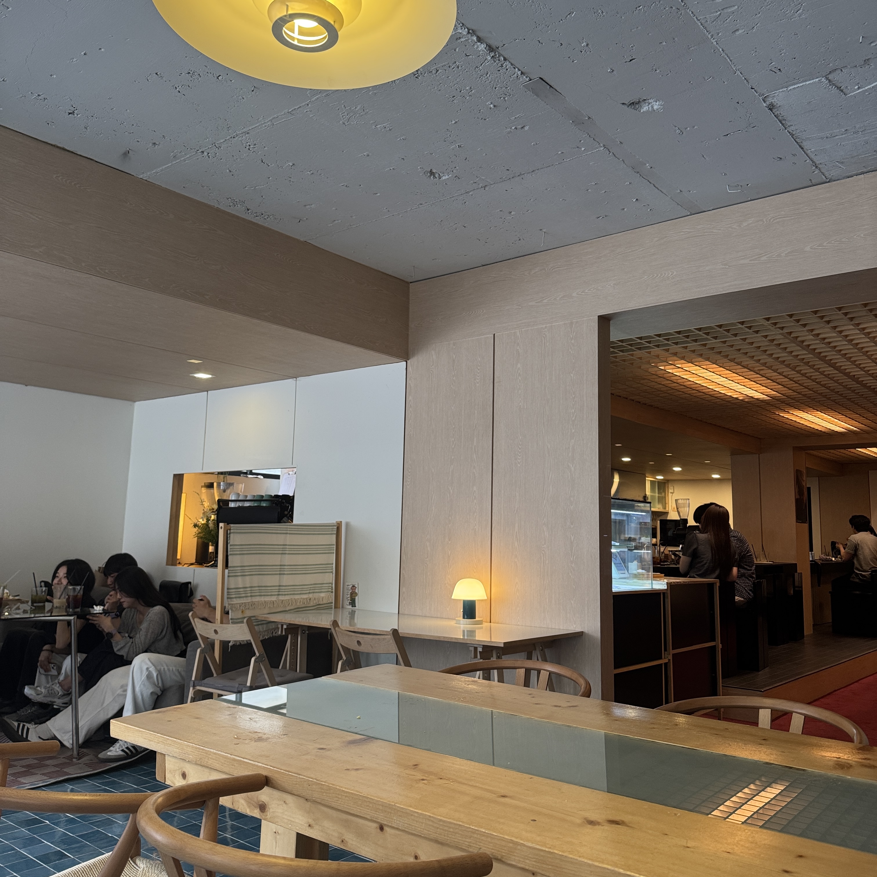 실내 인테리어, 실외 익스테리어 다 독특했는데, 같은 분위기가 연결되지 않는 저마다 개성을 갖춘 테이블과 의자... 그리고 노출콘크리트 천정과 획일화 되지 않은 조명.... 분위기 근사했다.